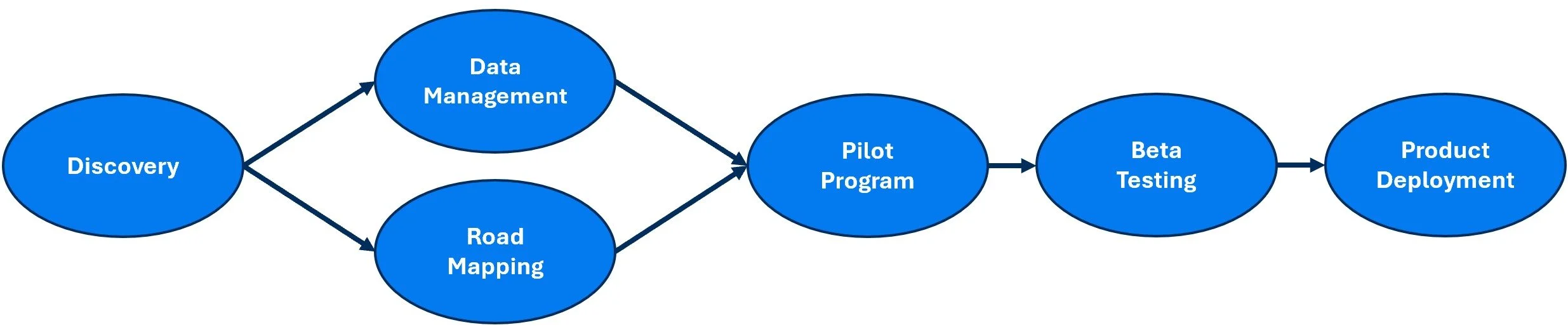 The project lifecycle represents the entire engagement journey with our clients. It is not restricted to a singular end goal. We believe in a custom but iterative approach to problem solving and this sets the stage to move along the journey in an organized fashion. This is a big part of our pitch.